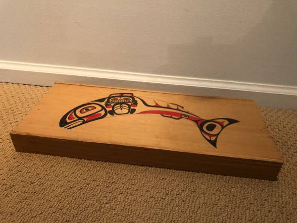 Vintage Large Salmon Haida Wooden Box in great condition. L 18" x W 7.75" x H 1.6".