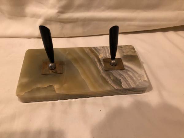 Vintage MCM Gorgeous stone Green Onyx Marble Stone Agate Double Pen B. - $125