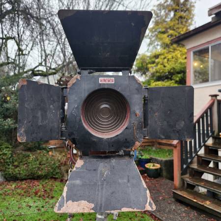 Mole Richardson 407 Baby Solarspot Light - NO CORD Comes with a 3641 Super Husky Baby Stand made of aluminum that goes up to around 12 feet tall Some cosmetic wear. Cord has been cut so needs...