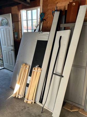 Upholstered bed frame, Kabusa light gray, (Queen) - Like New + Luröy slated bed base