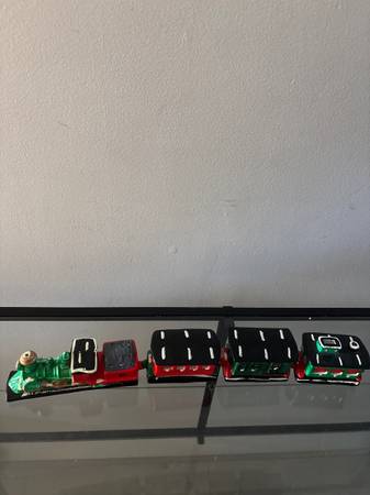 Selling a fine earthenware train set! It comes with the original box. The train is red, green, and black.