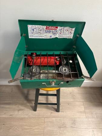 Selling a Coleman EASI-LITE campstove. It shows some signs of use, but it's still functional. Comes with the original box!