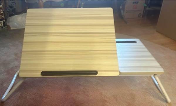 Adjustable side table, folding tray Very good condition - dimensions listed in picture 4 Only $25 Location - W8 Item # - 4787
