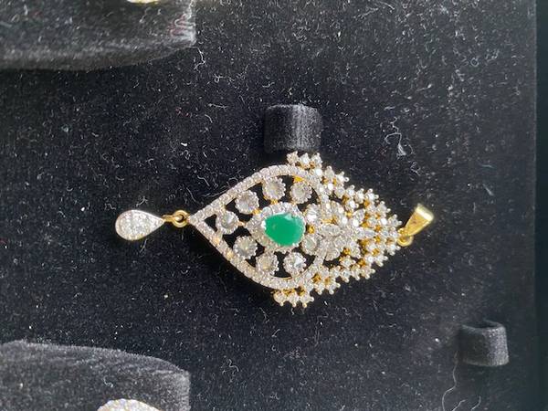 Attractive pendent - faux emerald & diamonds - pendent and earrings Never worn. *Background black etc., just for photos.