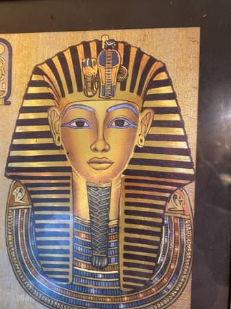 Vintage Framed Foil Artwork of Egyptian * frame measures 9 X 11 *the actual artwork inside mat measures 8 X10