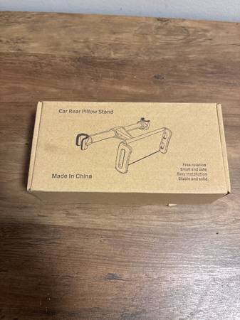 This is a car rear pillow stand for holding phones or tablets. It offers free rotation, easy installation, and a stable, solid design. It's small and safe for use.