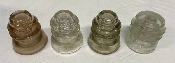 Collection of 25 glass, and ceramic, and 1 rubber telegraph insulators A few have chips and tried to display those with the damaged side showing. Some embossed with makers such as Dominion, Hemingray and Brookfield. $50 for the collection of 25, located in Squamish