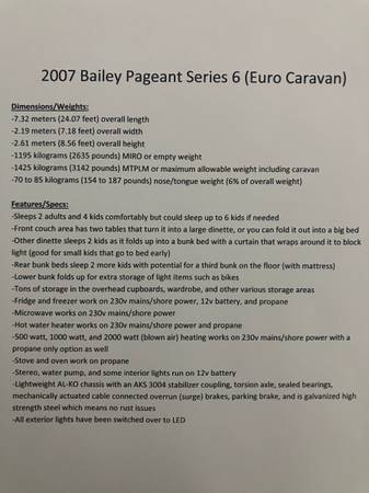 Please see the last three photos for all of the caravan information as the post is getting flagged for some reason if I write it out here