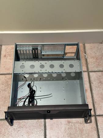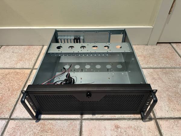 This 4U server case supports 360mm AIO liquid coolers and a standard ATX power supply.