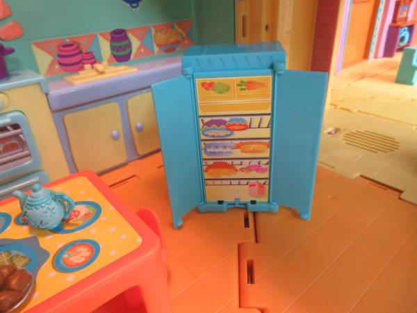 (Pres the family picture: Dora talks; Press the radio: 2 songs start; Touch the stove knobs: lights up; Open Fridge: "Whats in it?; Unfold table on the wall)
